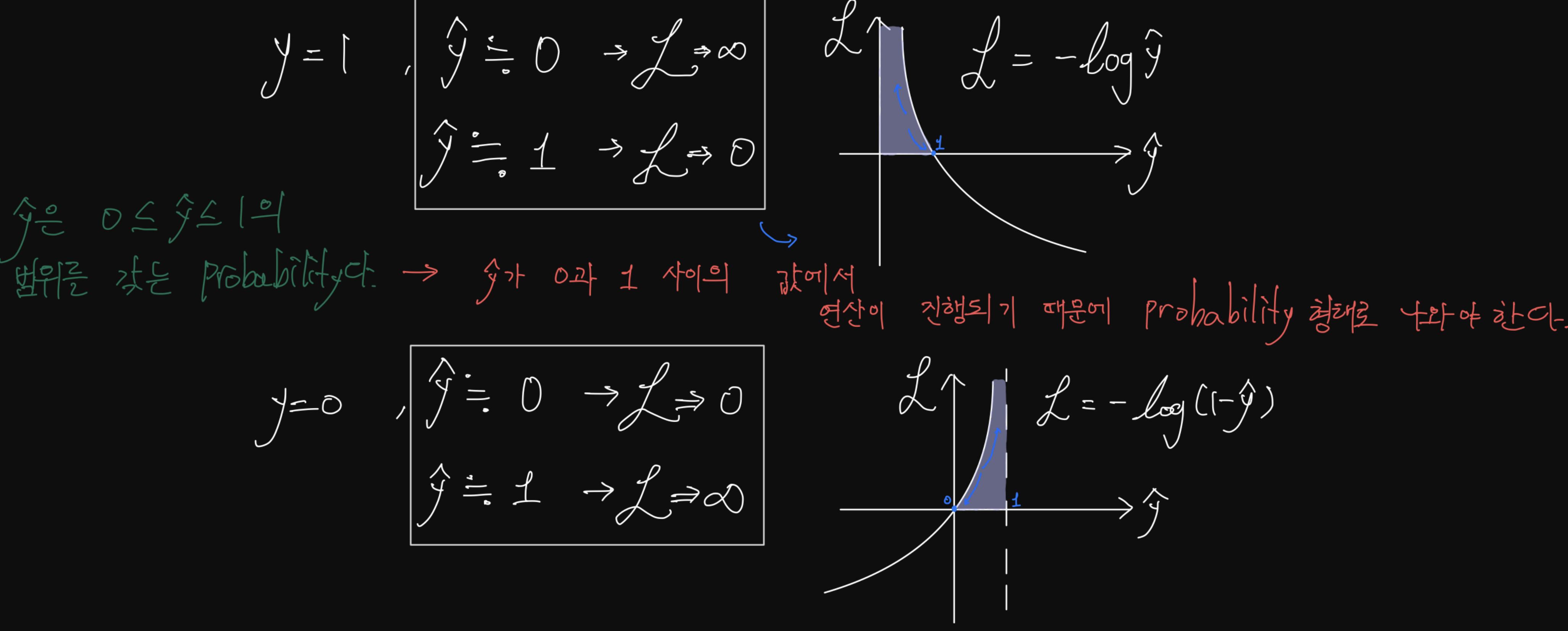Binary Classification의 특성상 y값이 0 또는 1이 나오기 때문에 위와 같은 식을 구현하여 Loss 값을 추출할 수 있게 됨!