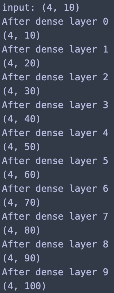 x = dense(x) #dense_layers에 들어가 있는 layer들을 순차적으로 통과하면서 연산되어 나간다.