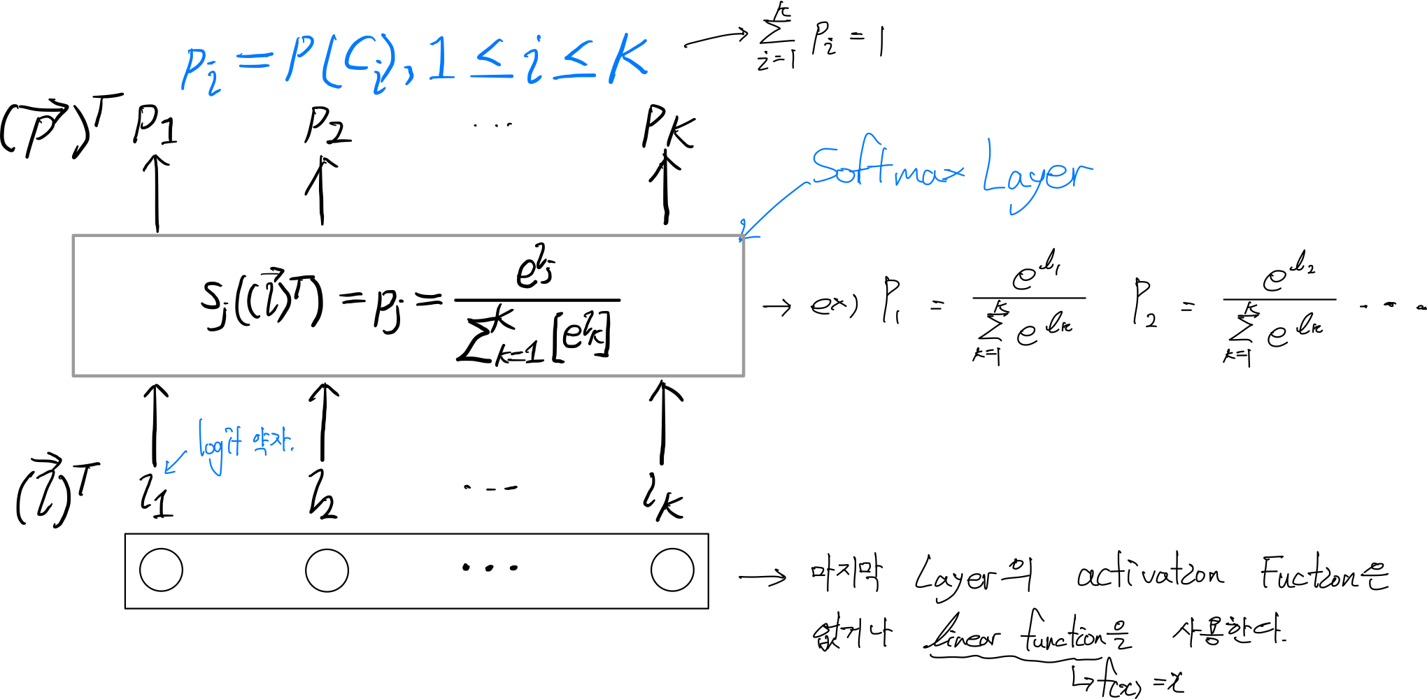 - Softmax 이전 layer에는 activation Function을 사용하지 않거나, linear Function을 사용한다.