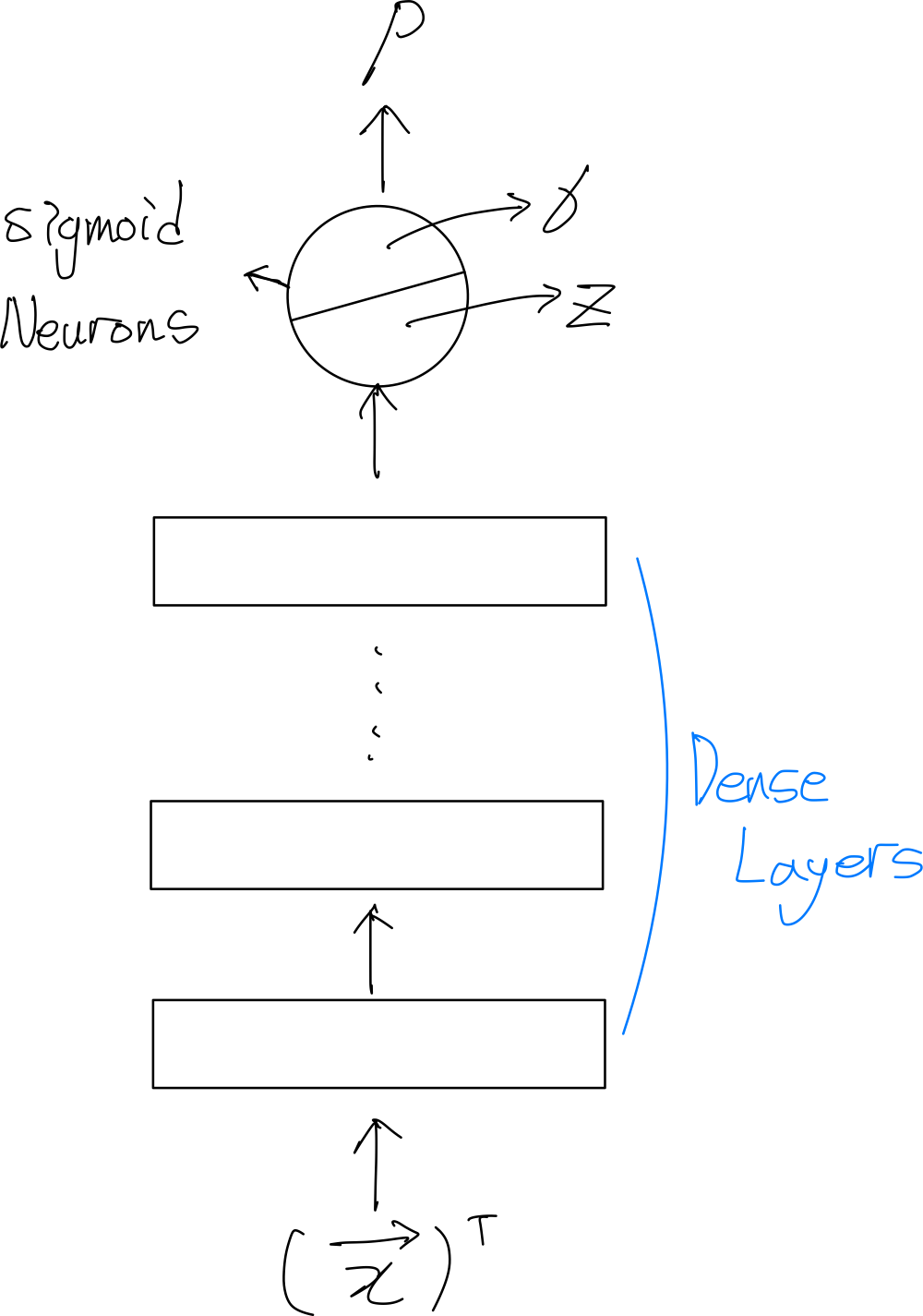 위 과정은 마지막 layer에 Sigmoid activation Function을 실행할 Neuron을 하나 추가하여 마지막 Output이 확률값이 되도록 한다.